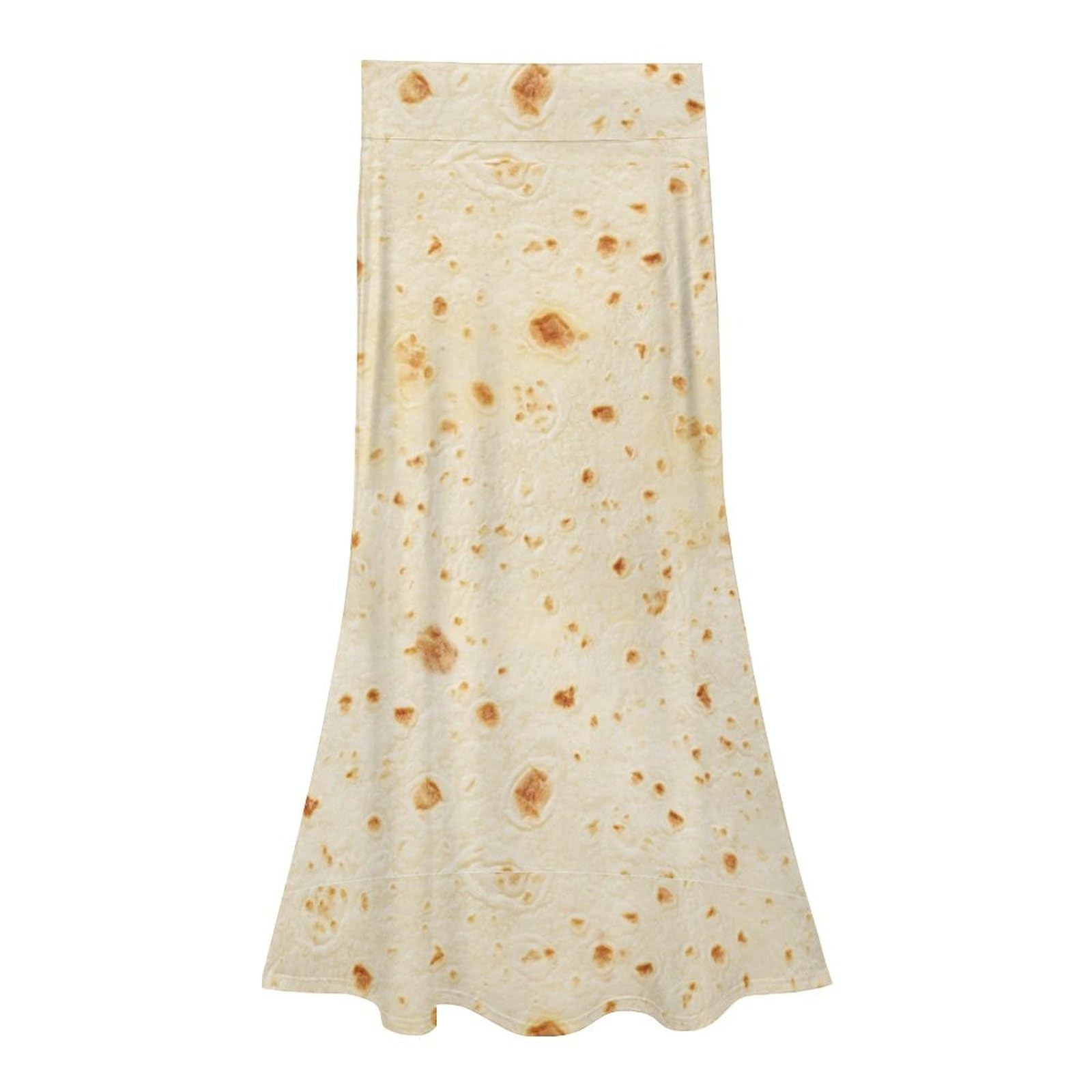 Burrito Tortilla Pattern Women's Fashion Printed High Waist Flared Long Skirt M