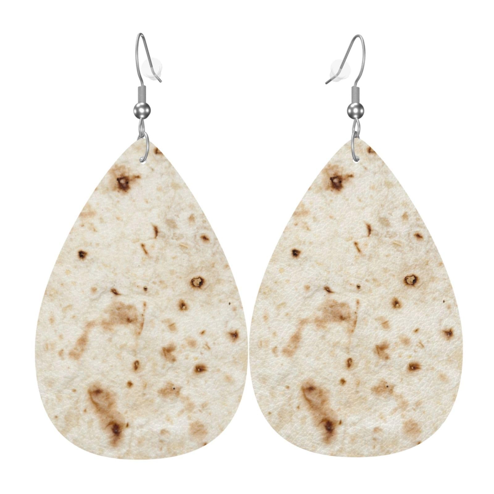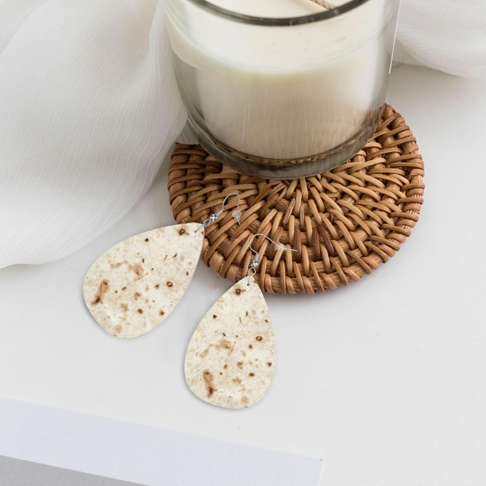 Giant Flour Tortilla Taco Earrings Dangle Earrings Double-Sided Leather Drop Teardrop Earrings Holiday Party Jewelry Gifts For Women